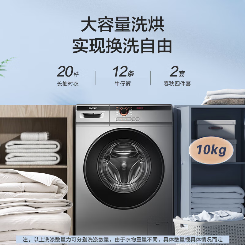 海尔 10公斤滚筒洗衣机 全自动变频洗烘一体 G10HB22SE