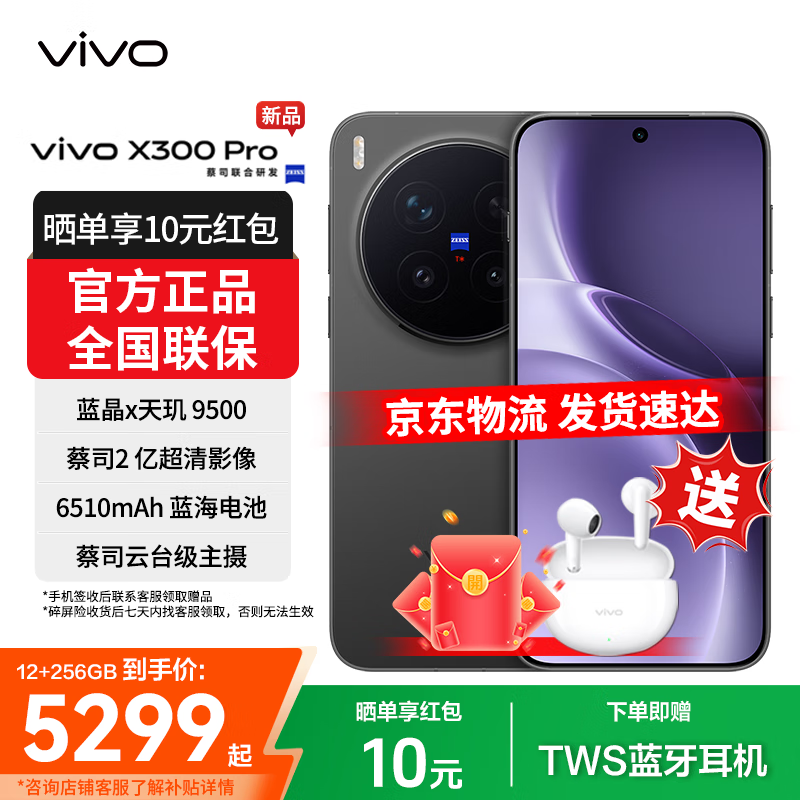 vivo X300 Pro 新品5G手机 蔡司2亿APO超级长焦 纯粹黑 16GB 512GB 官方标配