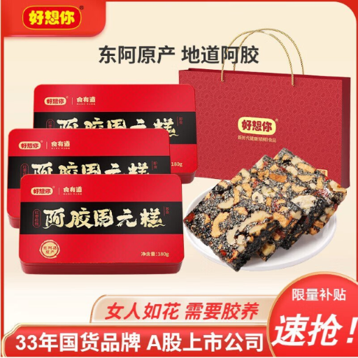 【🚚五星店铺】好想你 阿胶固元糕 180g*3盒+手提袋