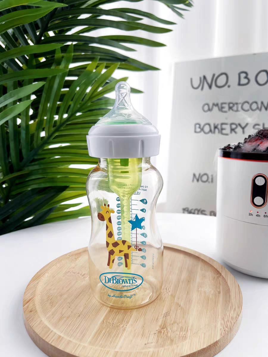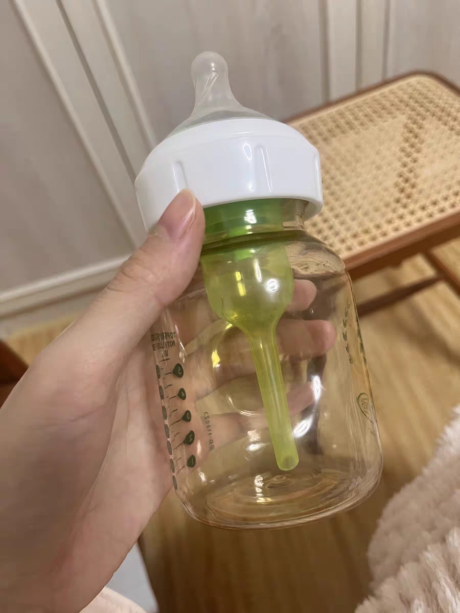 奶嘴仿母乳设计,添加防漏片,导气管升级喝奶更省劲,轻便易携带耐用不怕摔!!