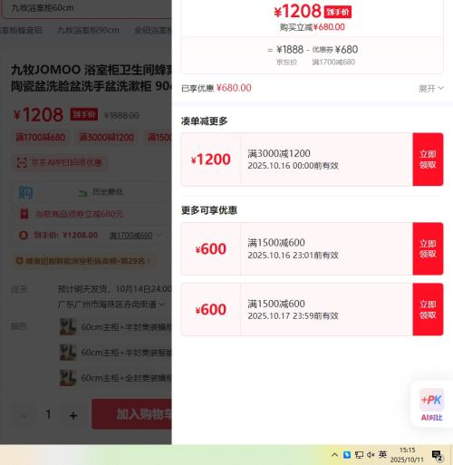 实付单件1208元