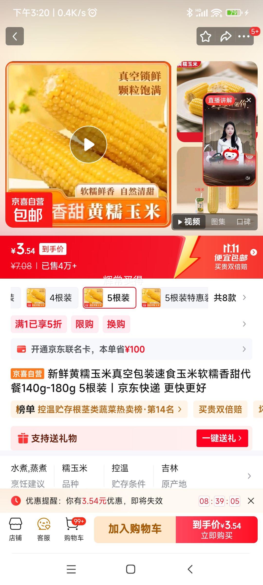超值爆料 - 详情 部分线报时效很短,如价格及优惠变化请略过! 促销规则由活动方制定,请以其解释为准! 内容源于网络,真伪及有效性需您自行验证! 因本站信息致损失,责任完全由您自行承担! 东北黄糯玉米 5根 东北黄糯玉米 5根 3.54元(需领券) 10-11 15:23直达链接 购买方案 1 店铺 京东商城 京喜直营 ,商品面价7.08元 2 领券 满1件打5折(领取链接) 点击领取【隐藏优惠】,购买更省! 3 加购 购买1件 4 实付 3.54元 ( 实付单件3.54元 ) 商品介绍 真空锁鲜,颗粒饱满 优惠证明 直达链接 此内容采集于网络,真伪及有效性未验证,请自行甄别!