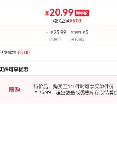 超值爆料 - 详情 部分线报时效很短,如价格及优惠变化请略过! 促销规则由活动方制定,请以其解释为准! 内容源于网络,真伪及有效性需您自行验证! 因本站信息致损失,责任完全由您自行承担! 山东烟台红富士苹果 脆甜冰糖心 新鲜整箱送礼 精选5斤装 净重4.5斤 山东烟台红富士苹果 脆甜冰糖心 新鲜整箱送礼 精选5斤装 净重4.5斤 20.99元(需领券) 10-11 15:25直达链接 购买方案 1 店铺 京东商城 京喜直营 ,商品面价25.99元 2 领券 满16减5(下单自动领取) 点击领取【隐藏优惠】,购买更省! 3 加购 购买1件 4 实付 20.99元 ( 实付单件20.99元 ) 优惠证明 直达链接 此内容采集于网络,真伪及有效性未验证,请自行甄别!