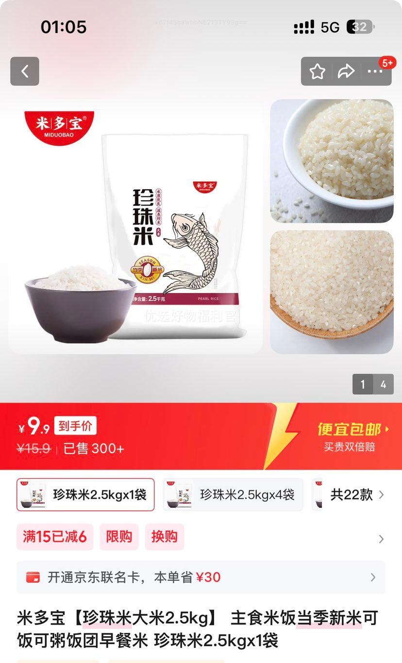 米多宝 珍珠米大米 2.5kg 当季新米 主食米饭饭团早餐米
