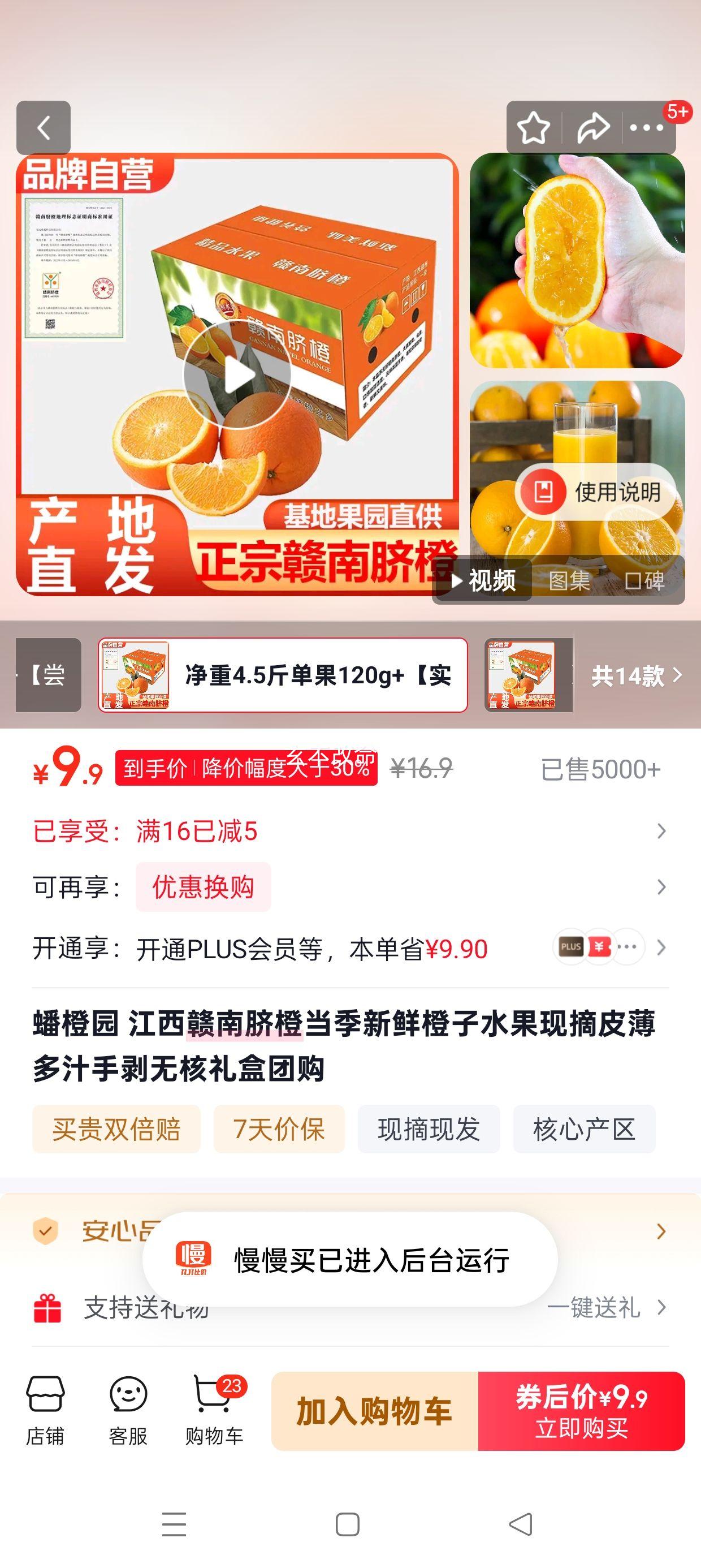需首购:蟠橙园 江西赣南脐橙礼盒 净重4.5斤单果120g+【实惠装】