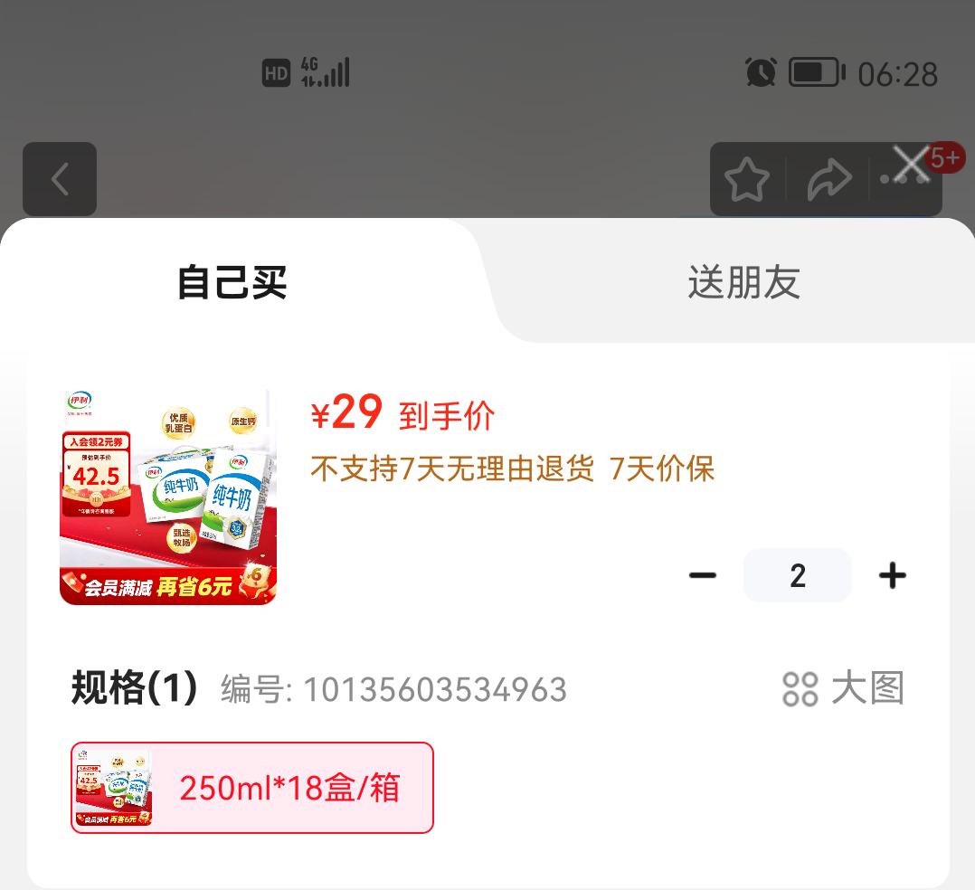 超值爆料 - 详情 部分线报时效很短,如价格及优惠变化请略过! 促销规则由活动方制定,请以其解释为准! 内容源于网络,真伪及有效性需您自行验证! 因本站信息致损失,责任完全由您自行承担! 伊利 全脂 利乐砖 纯牛奶 3.2g蛋白质 250ml 18盒 伊利 全脂 利乐砖 纯牛奶 3.2g蛋白质 250ml 18盒 58元(需领券,合29元/件) 11-26 06:33直达链接 购买方案 1 店铺 京东商城 伊利牛奶旗舰店 ,商品面价59.5元 2 领券 满59减5 点击领取【隐藏优惠】,购买更省! 满110元减27元 点击领取【隐藏优惠】,购买更省! 满99元减10元(商品详情页) 满118减24 3 补贴 去领券 4 加购 购买2件 5 实付 58元 ( 实付单件29元 ) 优惠证明 商品介绍 这款联名牛奶包装超有修仙那味儿!250ml一盒刚好当早餐,优质蛋白营养够学生党早上喝,21盒装囤一箱放家里,每天早上来一盒开启元气满满的一天~ 直达链接 此内容采集于网络,真伪及有效性未验证,请自行甄别!