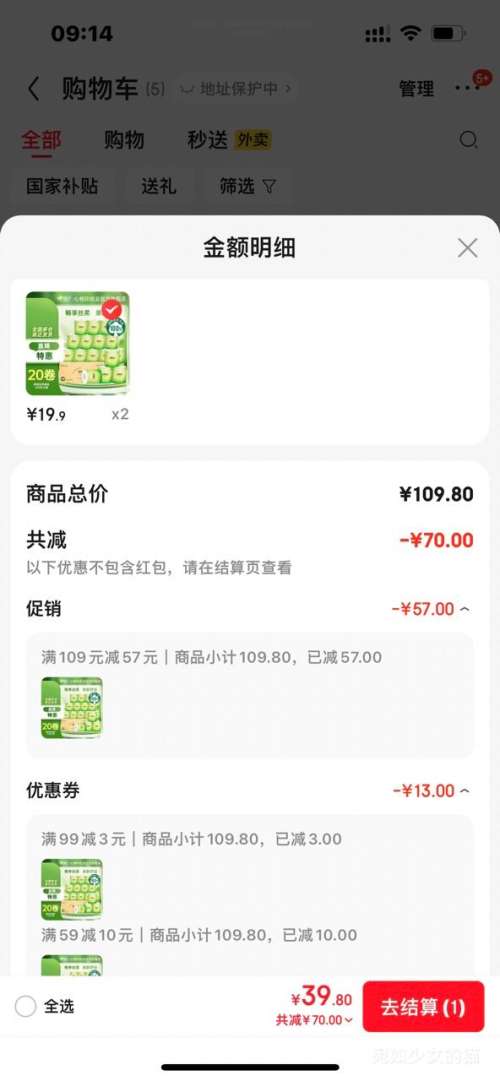 心相印 卷纸 整箱 茶语丝享卷纸 4层 100g/卷*20卷 *2件