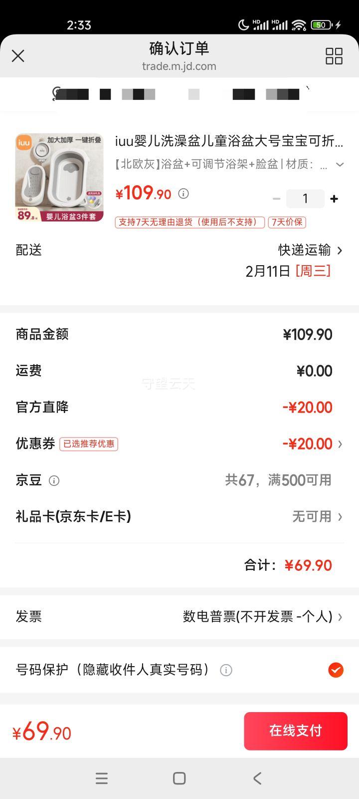 超值爆料 - 详情 部分线报时效很短,如价格及优惠变化请略过! 促销规则由活动方制定,请以其解释为准! 内容源于网络,真伪及有效性需您自行验证! 因本站信息致损失,责任完全由您自行承担! iuu 婴儿洗澡盆儿童浴盆大号宝宝可折叠可坐可躺浴架脸盆套餐 北欧灰 浴盆+可调节浴架+脸盆 食品级PP原料 iuu 婴儿洗澡盆儿童浴盆大号宝宝可折叠可坐可躺浴架脸盆套餐 北欧灰 浴盆+可调节浴架+脸盆 食品级PP原料 年货节:69.9元(需领券) 02-10 17:57直达链接 购买方案 1 店铺 京东商城 IUU旗舰店 ,商品面价109.9元 2 领券 满99元减20元(下单自动领取) 点击领取【隐藏优惠】,购买更省! 官方直降20 3 加购 购买1件 4 实付 69.9元 ( 实付单件69.9元 ) 优惠证明 直达链接 此内容采集于网络,真伪及有效性未验证,请自行甄别!