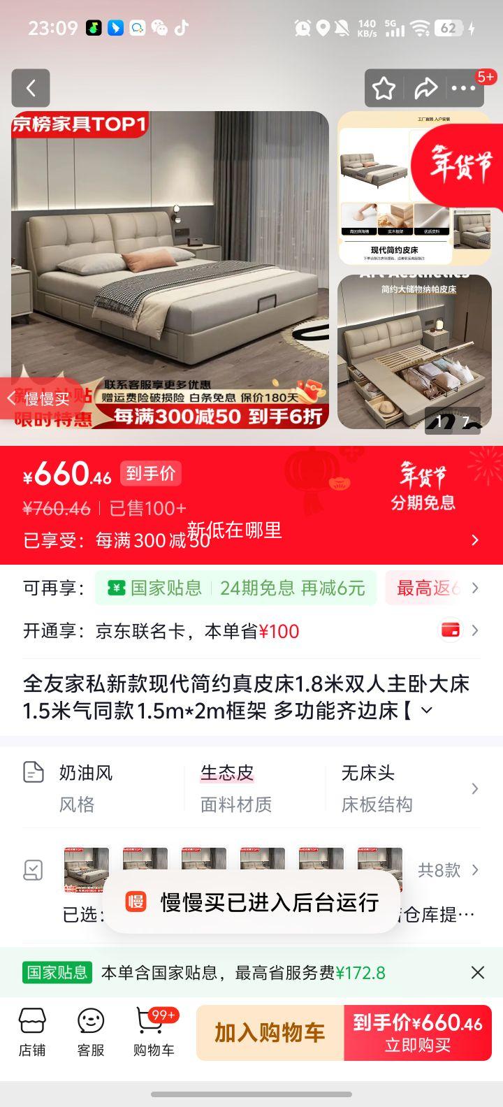 全友家私 现代简约真皮床 1.5m*2m框架 多功能齐边床 同款 本店仓库提货