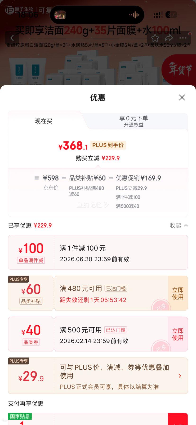 年货节 plus285元超级补贴(200-25/480-60/2000-200)(领取链接)