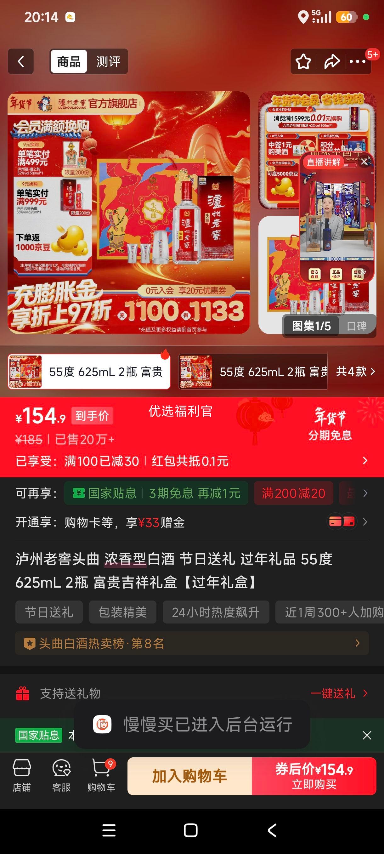 年货节:泸州老窖 头曲酒 55° 浓香型 625ml 2瓶