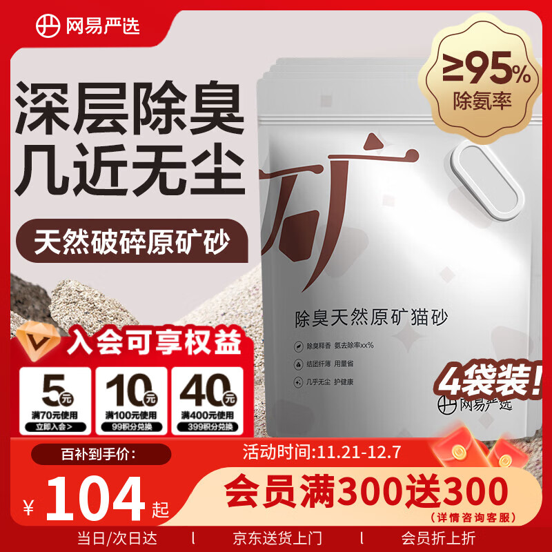 网易严选天然原矿猫砂4.5kg*4包