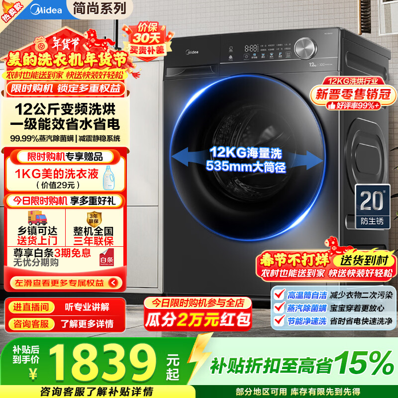 2116元 美的(Midea)旗舰店洗衣机