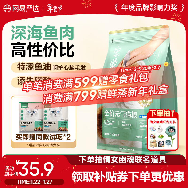 网易严选无谷深海鱼幼猫粮1kg*2袋
