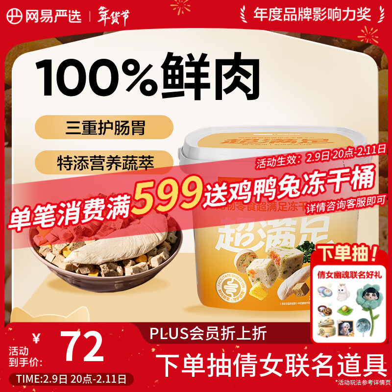 网易严选鲜肉蛋黄五拼冻干桶500g
