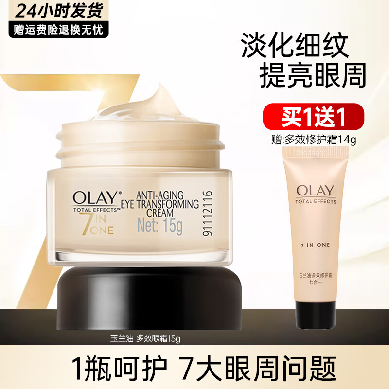 【3折】玉兰油(OLAY)多效抗皱眼霜补水保湿抗皱紧致肌肤眼纹细纹滋润眼周护肤母亲节 15g*1瓶 修护霜14g