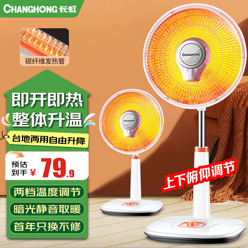 【6折】长虹(CHANGHONG) 取暖器小太阳电暖器摇头办公家用即热升降电暖气即热烤火炉速热升降电暖炉 标准台地机械款(无摇头800W)